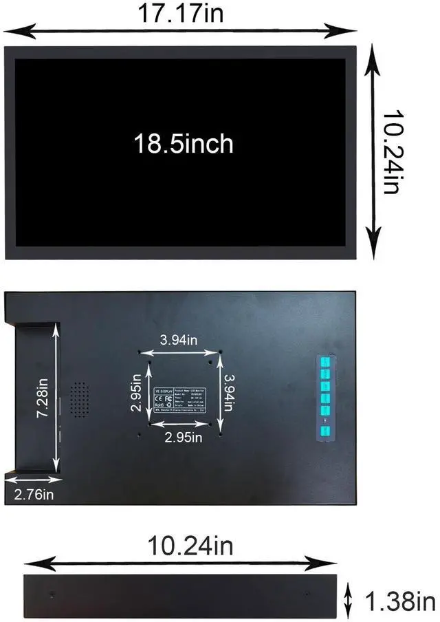 kg/ 8.38 lbPacking list: 1 18.5 inch 1920x1080 LCD Monitor VS185ZJ01-686761 Bracket1x Signal Cable1 12V 2A Power Adapter