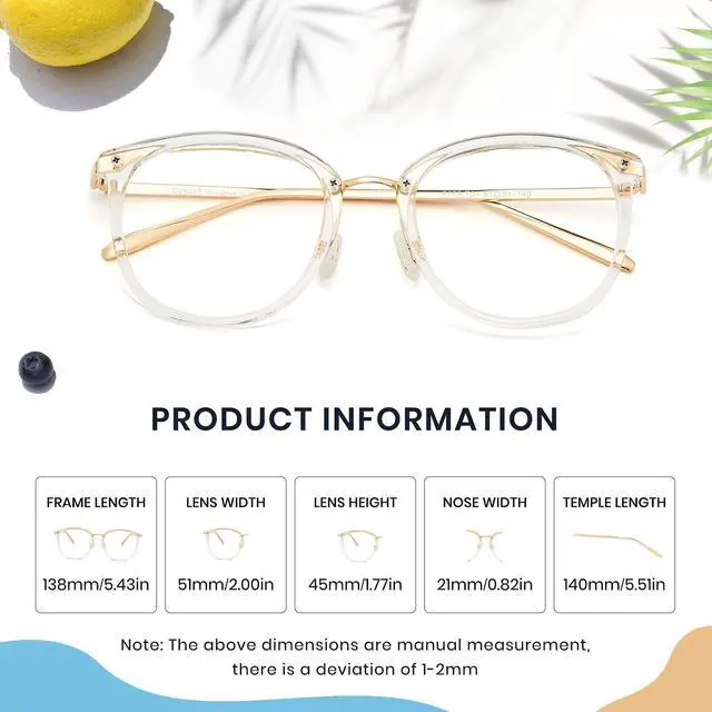 Anti-Glare Coating: Our women's blue light glasses come with an anti-glare coating that minimizes reflections and improves visual comfort, especially during prolonged screen use ^^