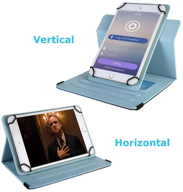 as: Apple iPad Mini 6 2021 8.3", iPad Mini 5 2019, iPad Mini 4 / 3 / 2 / 1 7.9", Samsung Galaxy Tab A 8.0 / Tab E 8.0 / Tab 4 8.0 / Tab S2 / Tab S2 Nook 8", Kindle Fire HD 8 inch ( 10th/ 8th/ 7th/ 6th/ 5th Generation ), Lenovo Tab 4 8 Plus / Yoga Tab 3 8, Huawei MediaPad M3 Lite 8 / M2 8.0 / T1 8.0, Dragon Touch, ASUS ZenPad, LG G Pad, iRULU eXpro, Dell, Acer, Hisense SERO and more 8 inch Android tablet. NO camera opening; NOT support auto sleep/wake for any tabletsFeatures: Synthetic PU leather exterior protect the tablet from scratches, impacts, dust or any other daily damage. Convenient Card Slots Holder wallet style, organize your various cards while on the go. Equipped with 4 flexible clasps, easily clip-on and hold your tablet firmly and securely. Innovative 360 rotatable kickstand design, you may adjust the stand angles horizontally and vertically. Anti-slip stripes set up multiple viewing angles for easy reading and movie-viewing. Lightweight cover with comfortable grip and many fun colors for option. Ideal for home, work and travel.