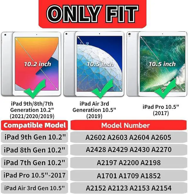 Compatibility: Designed for your iPad 10.2 / 10.5 inch, this iPad case fits various models including iPad 9th Gen 2021 (A2603 A2604 A2605), iPad 8th Gen 2020 (A2270 A2428 A2429 A2430), iPad 7th Gen 2019 (A2197 A2200 A2198), iPad Air 3rd Gen 10.5" 2019 (A2152 A2123 A2153), and iPad Pro 10.5" 2017 (A1701 A1709) ^^ Built-in