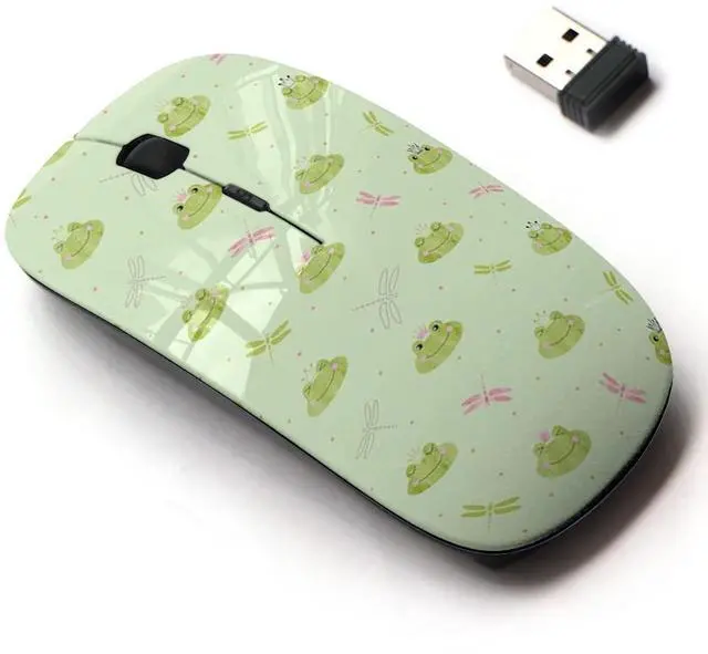 CJCBROES 2.4G Wireless Mouse with Cute Pattern Design for All Laptops and Desktops with Nano Receiver - Cute Frogs Dragonflies