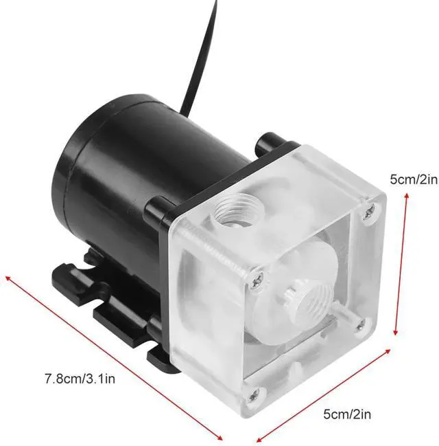 Efficient Heat DissipationWith a max flow rate of 500 L/H, this water cooling pump significantly cools down your computer quickly, ensuring stable performance with high flow rate. ^^ Multifunctional & QuietThis G1/4 thread water pump is for your computer CPU water cooling system. It operates quietly and has an LED power indicator for easy use. ^^ Stable & Convenient DesignThe integrated design of the water and pump ensures stable and smooth performance, while the concise appearance and easy installation it a convenient choice. ^^ Noiseless & Safe OperationMade of acrylic and plastic, this water cooling pump operates ultra quietly and has multi level for safe and long lasting use.