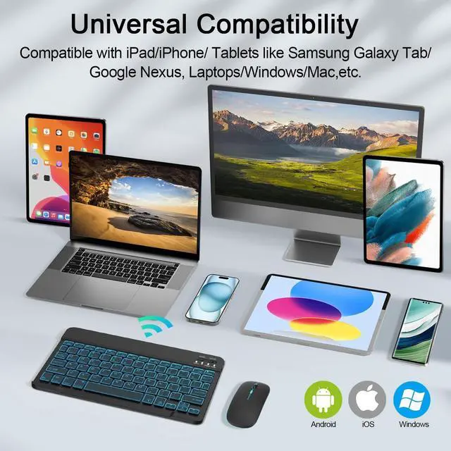 Wide Compatibility: This wireless keyboard and mouse compatible with Windows, IOS, MAC and Android operating systems. It can works with iPad 11th/10th/9th/8th/7th, iPad Pro series, iPad Air series, iPad Mini series, iPhone and Android mobile devices.