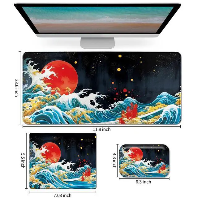 SetSIZE: Desk pad protector - 23.6 * 11.8 inch ( 60*30 cm) wrist rest Elbow support - 6.3 * 4.3 inch ( 16.2 * 11.2 cm)small mouse pad - 5 * 7 inch (14*18 cm)