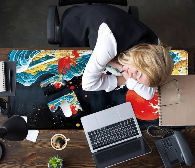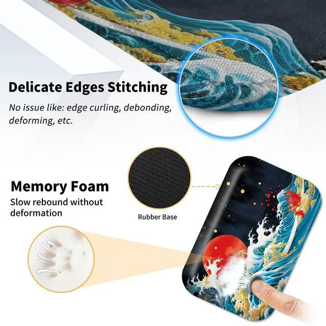 MATERIALS: Lycra surface + Memory foam filling + Rubber baseWHAT YOU GET? 1. Desk pad protector + wrist rest elbow support + mini mouse pad2. Minimize stress and fatigue on your wrist, prevent wrist, hand and elbows injury3. Brighten up and protect the desktop and provide you with a more comfortable gaming or work experienceFEATURESDESK MOUSE PAD COMBO--Desk mat/large mouse pad + wrist rest elbow support + small mouse pad, suit for study work and game on computer laptopCOMPACT SIZE---Portable Desk pad size 60 * 30 cm can protect the desktop and accommodate computer/laptop, keyboards and miceERGONOMIC WRIST REST CUSHION--Rest your wrist in a natural positon and elbow soothing for ergonomic comfort, provide lasting support for your wrist arm elbowUNIQUE AND STYLISH--Designed personalized and vibrant pattern with HD printing, No fade or wash away, make your day brightCOMFORTABLE SMOOTH SURFACE--silky lycra fabric, gliding fast for mouse, soft and breathable, make your hand wrist and elbow comfortableNON-SLIP BASE--Textured rubber bottom firmly grip on the desktop, prevent sliding or unwanted movementDURABILITY--Wearproof fabric and fexible rubber cushioning base with stitched edges that's durble for long time useMouse pad and wrist rest combo with vivid HD print is an exquisite desk attachment for home, office and travel.