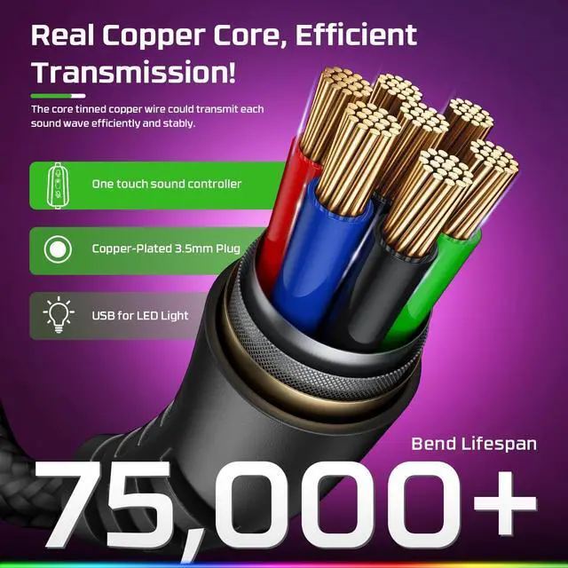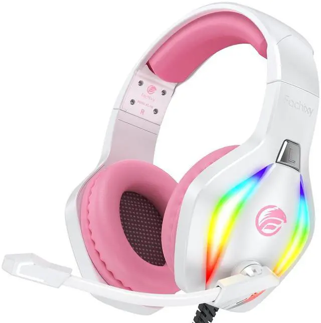 Note 3: The usb cable is only for led light power, 3.5 mm cable is for sound. Our gaming headset is not a usb headset. ^^ [Stereo Surround Sound Quality] The Fachixy Gaming Headset is equipped with 50mm high-density dual neodymium audio drivers, which can provide you with stereo clear sound. With responsive audio drivers, you can enjoy an immersive gaming experience with incredibly realistic sound. ^^ [Adjustable Noise Canceling Microphone] Fachixy headset integrated omnidirectional microphone transmits high-quality communication with its excellent noise control function, it can pick up sound very sensitively and cancel noise, allowing you to transmit or receive messages clearly in the game. ^^ [Multi-Platform Compatibility] Fachixy Headset with Microphone is compatible with PS4, PS5, Xbox One, Switch, PC, Laptop and most other devices with 3.5 mm audio jack. ^^ [Soft RGB Lighting] The Fachixy Gaming Headphones is equipped with a cool RGB light strip design. After plugging into the USB port, the LED lighting effect can change dynamically with the game. Bring out your LED RGB fantasies with vibrant, eye-catching lights in a dim halo. ^^ [One-button volume control] Fachixy Gaming Headset not only has a high-strength, anti-tangle 89-inch braided anti-twist data cable, but also has a rotary volume control and a one-button microphone mute function.