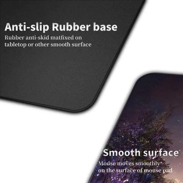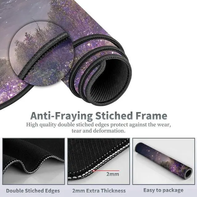 ^^ Natural Rubber Base The soft and dense non-skid nature rubber base keeps this oversize desk pad firmly in place. This long mouse mat remains uniformly flat even over imperfect surfaces. Just immerse your work or games without worrying about the annoying mouse pad movement. ^^ Edge Banding Desgin The full desk mouse pad Sewing frame ensures no friction or sagging. The edge trim design prolongs the service life and prevents the narrow top strip from leaving the base. Reinforced edges prevent deformation or damag ^^ Washable Design Desk Pad A spill-proof coating makes liquids slide right off the surface.