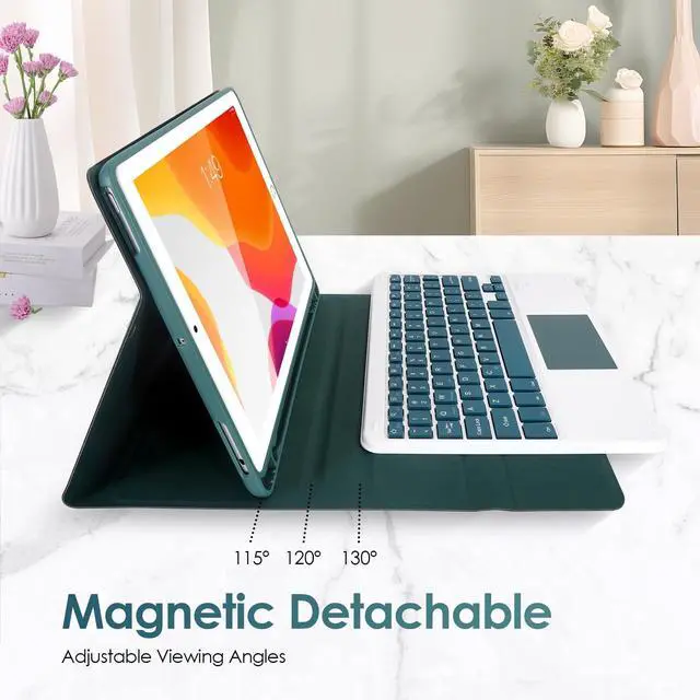 ^^ Detachable & Adjustable: Designed to stand your iPad hands free so you can focus on work, reading, watching videos, typing like on normal computer laptop. Innovative magnetically detachable wireless keyboard design makes it easy to use (the connection range is up to 10 M). And iPad protective case can be adjusted to different angles according to your needs, provides more comfortable feeling of use.