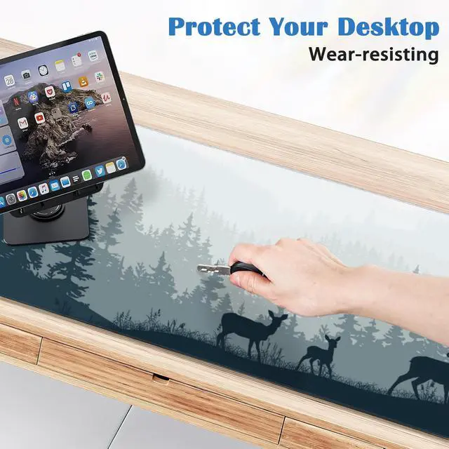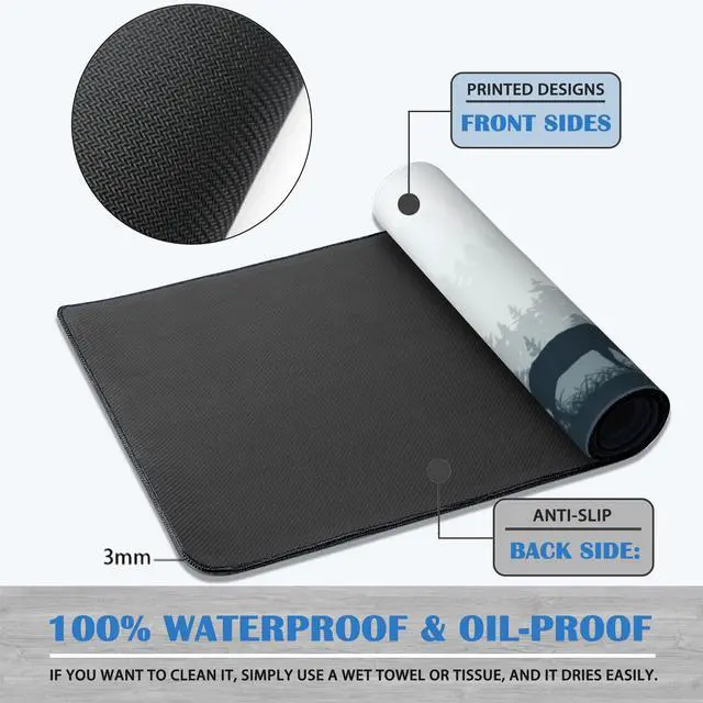 Environmental, and safe to use. ^^ Soft and Non-slip Rubber BaseThe soft and dense non-skid nature rubber base keeps the pad firmly in place, it can effectively prevent the mouse and keyboard from sliding and moving for stable operation. The desk pad is flexible enough to be rolled up for easy transport, to move around so you can work or game wherever you want. ^^ Suitable for many occasionsLarge enough size can protect the desktop from abrasion and liquid spills. Works well on all types of desks including wood, glass, leather, metal, marble desk and more.