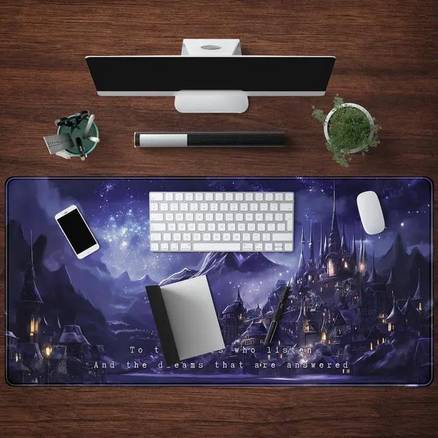 Night Purple Desk Mat Dark Academia Anime Computer Desk Keyboard Mat, 31.5 X 15.8 in Office Decor for Women Castle Aesthetics Mouse Pad XXL for Desktop Laptop Computer Mouse Gaming Pad