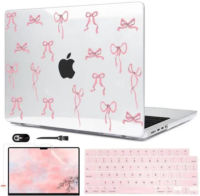 Package including: 1 plastic hard case for macbook pro 16 inch 2024 & 1 HD screen protector & 1 plastic webcam cover & 1 keyboard cleaning brush & 1 keyboard cover.