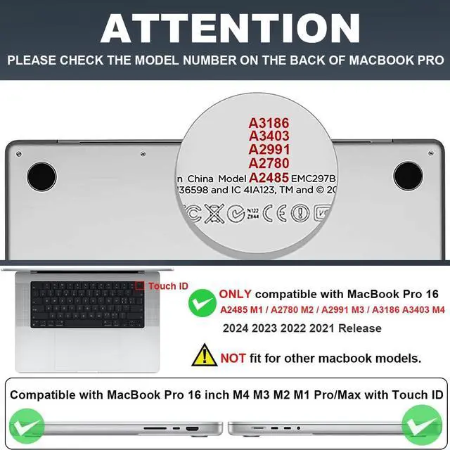 NOTE: NOT compatible with 2019/2020 Macbook Pro 16 inch model A2141. Please kindly check the model number "Axxxx" on the bottom of the laptop before purchase, make sure it matches the model number is "A2485" or "A2780"or "A2991"or "A3186"or "A3403".