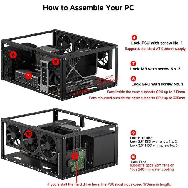 Placement Options: Measuring 435 x 340 x 195 mm( 17.12 13.38 7.67 inch), this case supports both horizontal and vertical placement. It is stackable up to 10 units horizontally, making it an ideal solution for workstations and server racks. ^^ Support motherboards Max 330*330mm (13*13inch), MB