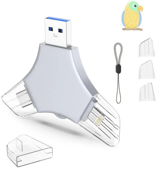 Multi-function Flash DriveThis flash drive is of top-notch quality and outstanding performance, enabling you to store your data more securely without fretting about data loss. Crafted from high-quality metal material and advanced chip technology, it has superb dustproof, drop-resistant, and anti-magnetic capabilities. ^^ 64GB 3-in-1 Lightweight and Compact Memory StickThe flash drive features USB/Lightning/Type C interfaces and is compatible with iOS devices running iOS 12.1 and above, OTG Android phones, PCs with Win7 and above, and MAC devices with MAC 10.6 and above, making it convenient for data transfer between different devices.