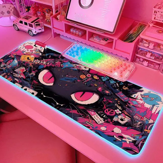 JMIYAV Pink RGB Gaming Mouse Pad 31.5x12 Inch PC XL Large Extended Glowing Led Light Up Desk Pad Non-Slip Rubber Base Computer Cute Mousepad Mat Desk Accessories Gaming Setup 763