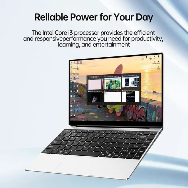 ^^ Experience dependable speed with this capable i3 laptop, powered by the Intel i3-6100U processor. It provides a responsive and smooth computing experience for everyday activities, from web browsing and document editing to media streaming. This processor delivers consistent performance for multitasking without overheating, ensuring a stable and frustration-free user experience for all your core computing needs. ^^ The ultimate academic companion, this feature-rich student laptop is built for college success. It includes a webcam for online lectures, a TF card slot for easy project storage expansion, and all-day portability for campus life.