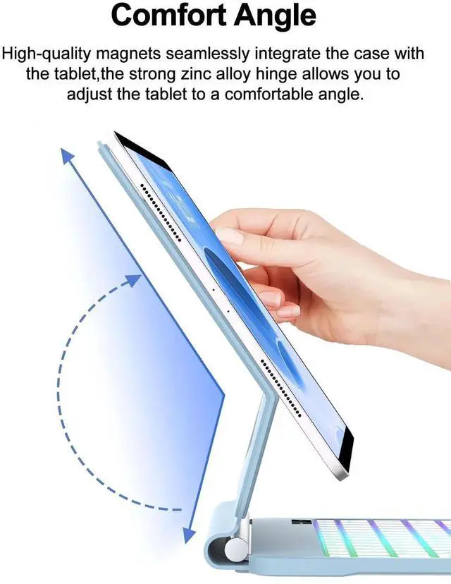 Easy-Set Floating Magnetic Stand:The durable aluminum alloy hinge holds the floating cantilever stand firmly in place. Lots of small magnets are built into the PU leather back cover, allowing you to attach your Tablet magnetically and transform it into a laptop in a second. The magnetic stand can be adjusted smoot