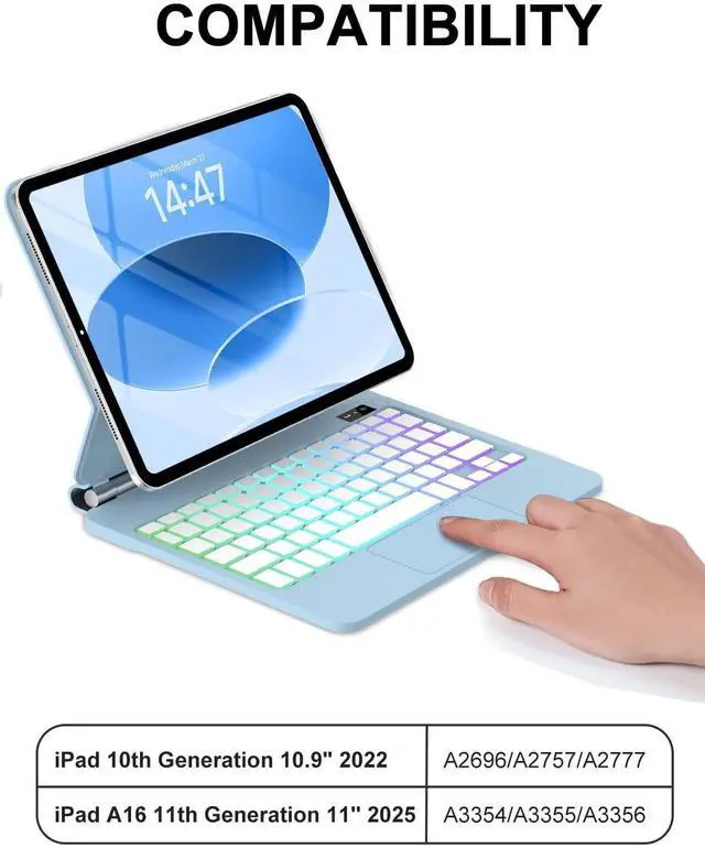 Compatibility:This Magic keyboard folio only compatible with iPad (A16) 11th Generation 11-inch 2025 (Model: A3354/A3355/A3356) & iPad 10th Generation 10.9inch 2022 (Model: A2757/A2777/A2696). This magic keyboard ipad 10th generation will NOT work for any other model device. Please check the model number on the back of your iPad to ensure a perfect fit