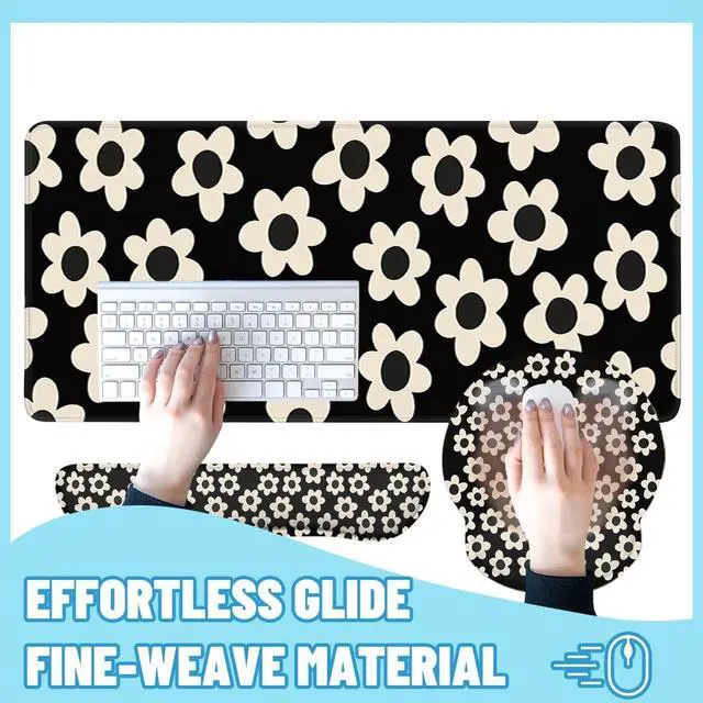 This 4-in-1 set includes: Large Flowers Desk Mat ( 35.4" 15.7" ), Keyboard Wrist Rest, Mouse Wrist Support, and a Drink Coasterperfectly combining comfort, functionality, and a unique decorative touch for your workspace. Our mouse pad sets are available in a variety of unique patterns and designs. Whether you prefer chic, modern, or colorful styles, youll find the perfect desk accessory to show off your personality. A stylish mouse pad can refresh your office setup, add artistic flair, and help improve your work & study efficiency. It also makes a thoughtful gift for friends, family, classmates, or colleagues.