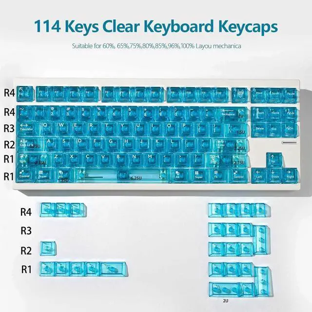 ^^ 24/7 SERVICE: 1x114 Cherry profile transparent mechanical keyboard keycaps, equipped with a keycap puller, excluding the keyboard. If you find any missing or defective keycaps after receiving the product, please contact us. We will send you replacement keycaps.