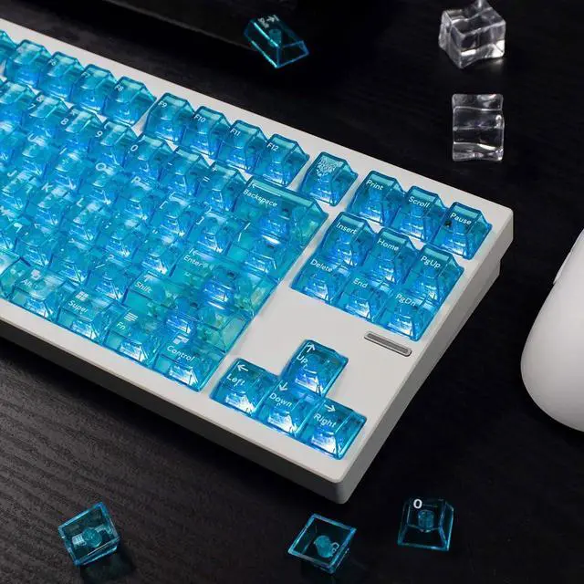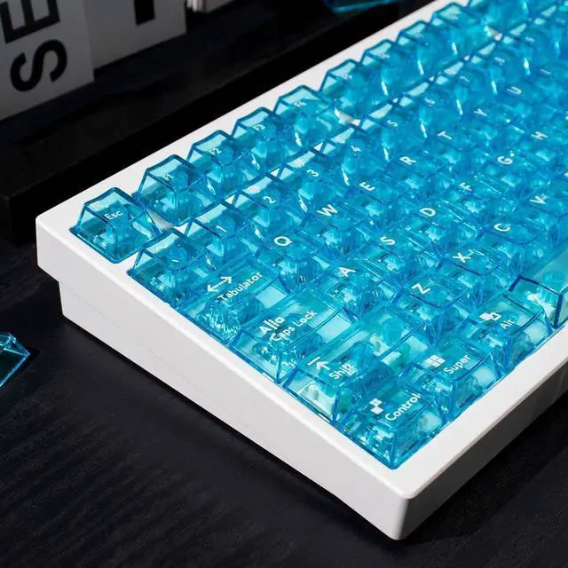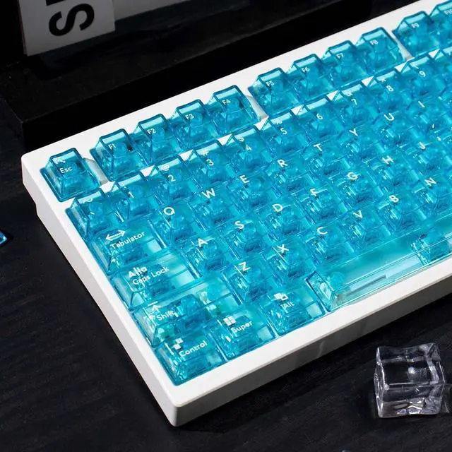 ^^ CLEAR KEYBOARD KEYCAPS: If you've been searching for a transparent keyboard with fun custom colors, this set of crystal clear keycaps will be your best office companion.