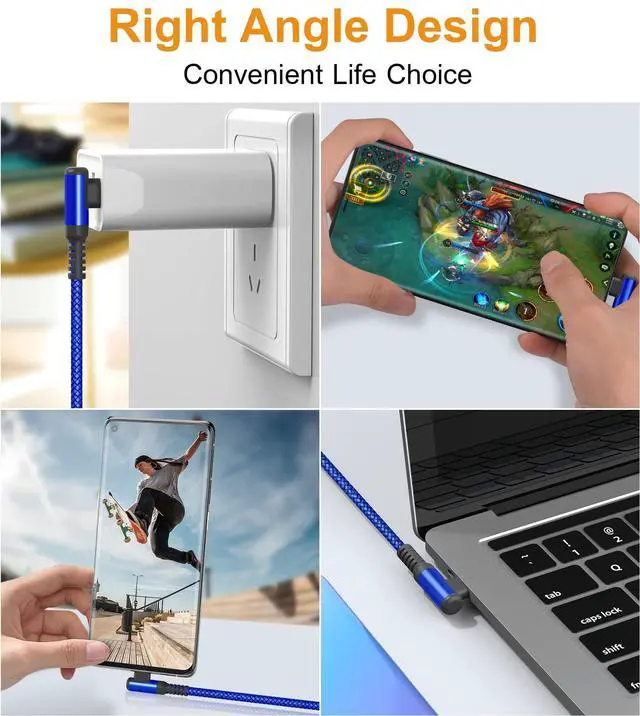 USB-C Right Angle Design]: This right angle type c charging cable fast charge with an innovative 90 degrees " L " design. It's user-friendly design more convenient and comfortable for playing games, watching videos, reading e-books when you charging. ^^ [Last 10X Stronger and