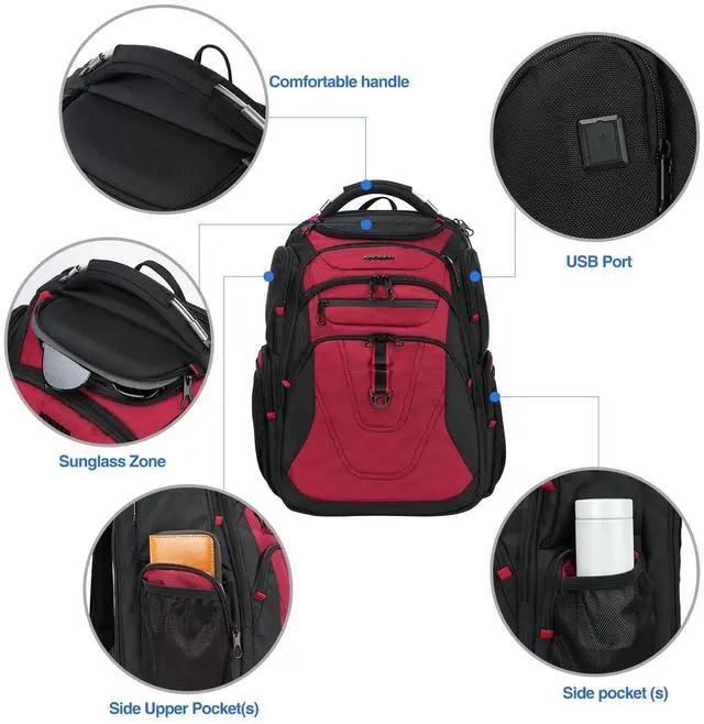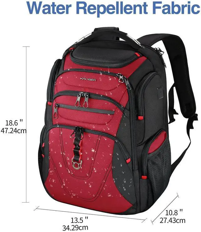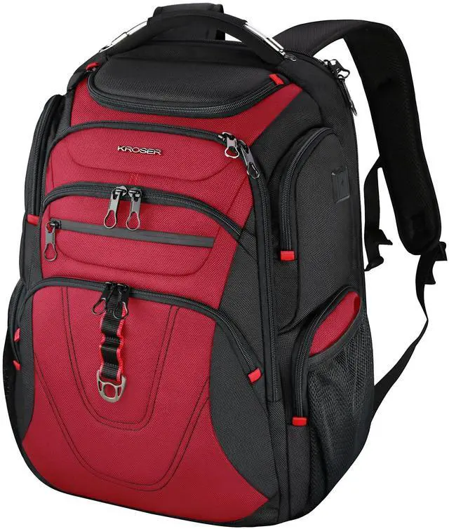 KROSER Friendly Travel Laptop Backpack 17.3 inch XXXL Gaming Backpack Water-Repellent College Daypack Business Backpack with RFID Pockets & USB Port for Men/Women-Black/Red