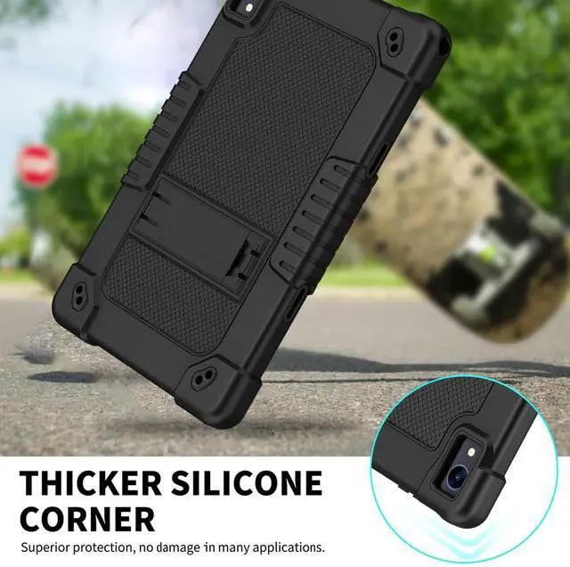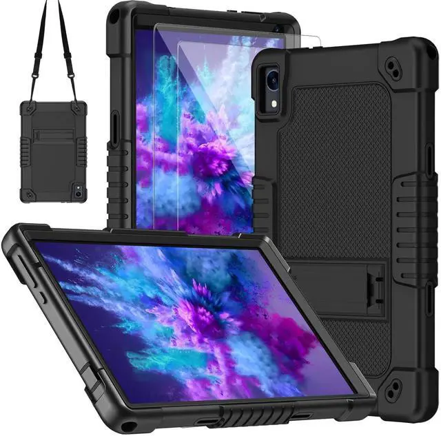 TabletFeatures: Kids Friendly Case Built in KickstandTablet Case Built in Shoulder StrapHeavy Duty protective Silicone and Hard Back CaseThe packaging includes 2 Pcs of Screen Protector