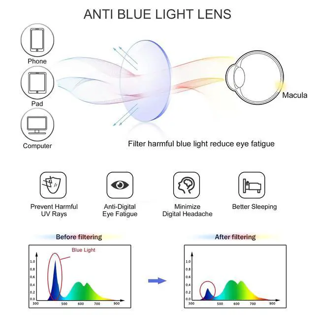 [Blue Light Blocking Glasses] Blue light blocker with UV400 protection, help you resist 90% harmful blue-ray, reduce discomfort from TV, phone, digital screen and reading under fluorescent lights. ^^ [HD Lens] Ultra-transparent lens with high light transmittance to prevent color distortion. No color difference, restore the true color. Give you a clear vision when play computer and laptop. ^^ [Lightweight Material] Ultra lightweight and flexible, put no stress on your nose ensuring comfort for long periods of time. ^^ [Classic Unisex Design] Square frame glasses fit perfectly and look good on all faces for men and women, you can protect your eyes while looking stylish.