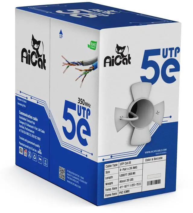 CERTIFIED AND TRACEABLE: All AiCat. Cables are CSA and ETL Certified, TAA and RoHS Compliant, and CMR flame resistant (IEC 60332-3 Cert). Each cat5e cable 1000ft is part of a detailed lot tracking system, barcode traceable and comes with a full guarantee. When you order now, youll be joining thousands of companies around the world who rely on AiCat.