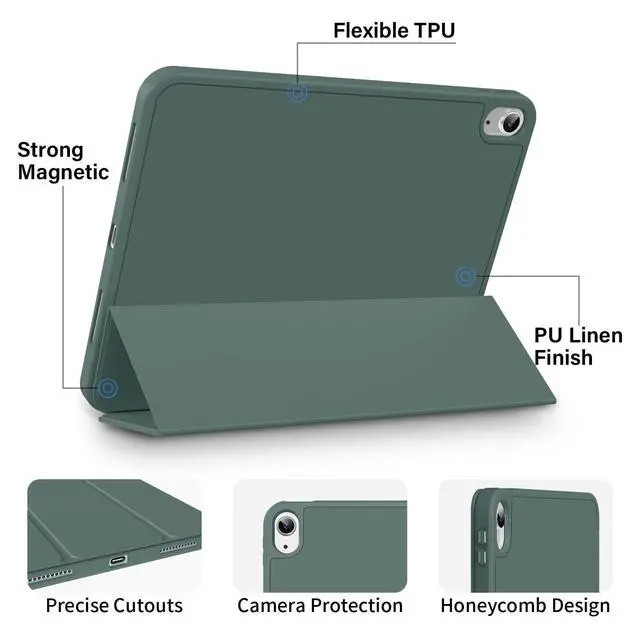 Features: This protective case for iPad 10th Gen case has a built-in stylus holder, which is convenient for you to store and access your Pencil, so that you don't have to worry about losing your pencils. The precise hole design makes the device fit perfectly, allowing you to use it with peace of mind. The built-in magnetic attraction of the iPad protective case makes it stand upright and stable, providing multiple angles, and easy viewing and writing modes anytime, anywhere. Intelligent automatic wake-up/sleep mode helps you save power and prolong lifespan. Colorful colors to choose as you like! ZKTUYU is worthy of your trust!