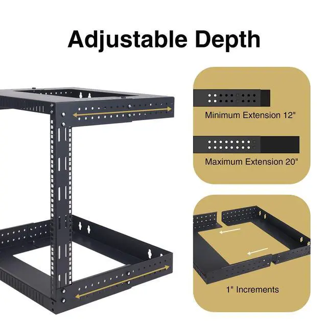 ULTIMATE VERSATILITY: Designed for wall mounting with rack-mount depth adjustable from 12" to 20", compatible with a variety of 19" rack mountable PA, servers, UPS systems and network equipment