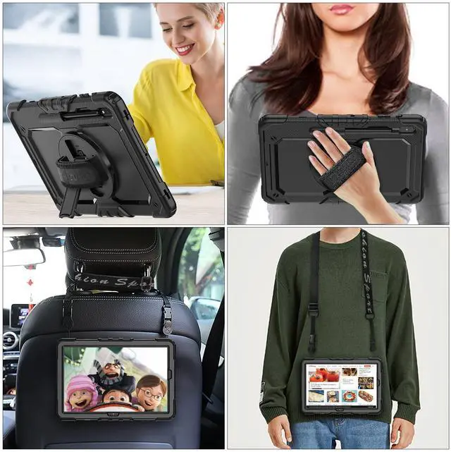 (Please kindly note: Pencil Not Included) ^^ Soft Hand Strap & Portable Shoulder Strap & Rotating Stand: Provide the securest protection and more convenience when you play or work with tablet; Hang it anywhere for your better entertainment, make your hands-free; 360 Degree rotating Kickstand provides multi-angle viewing, with soft handle strap, easier to use your tablet in your outdoor travelling, working, gaming ^^