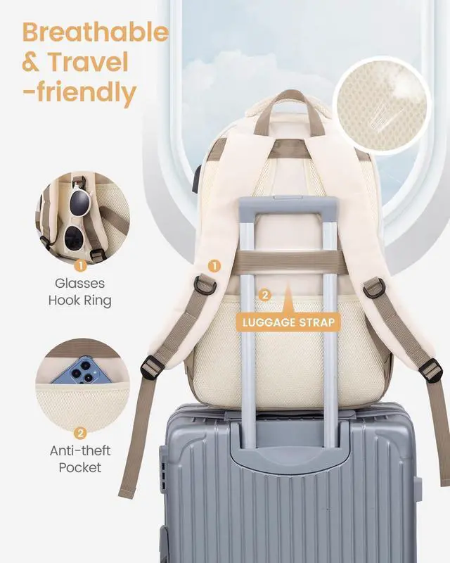 Capacity Design: A separate computer compartment can hold laptops of 15.6 inches and below. A main spacious packing room, and there are multiple pockets, pen pockets and compartments for small items at the front to keep your items organized and easier to find. An anti-theft pocket located on the back keeps your passport, wallet, phone and other valuable items safe and handy ^^