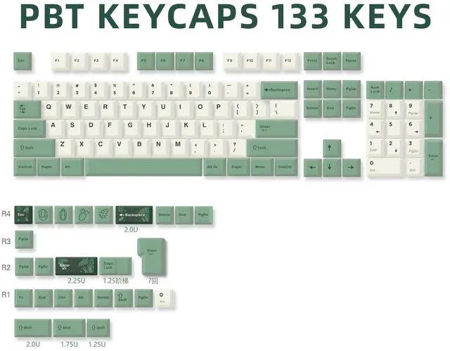 Botanical Garden ThemeThe classic botanical theme keycaps are loved by keycap enthusiasts, the beige and dark green keycaps look retro and charming. Adopting dye sub process, the beautiful patterns and bright colors will not change color after long time use, which can decorate your mechanical keyboard well. ^^ High Quality PBT MaterialMade of thick PBT material, PBT keycaps are structurally stable, wear-resistant and oil-resistant, not easy to be oiled after long time use, and maintain the initial state for a long time, which is the ideal choice for custom keycaps.