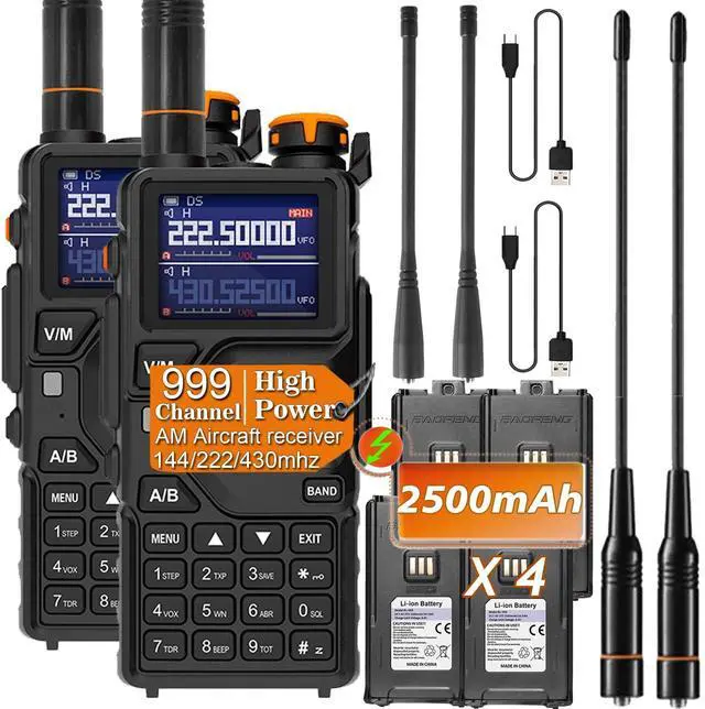 The baofeng radios supports multi-band: VHF (2M) /VHF2( 1.25M )/UHF (70CM). The baofeng radio has 1.77 LCD display, 2500 mAh rechargeable battery, 999 channels, 104/50 private code, High/Medium/Low power selectable, VOX, A/B band independent operation, NOAA weather/FM/AM receiver, flashlight, scanning and other functions. Support CHIRP, model selection K5-PLUS ^^ 2.