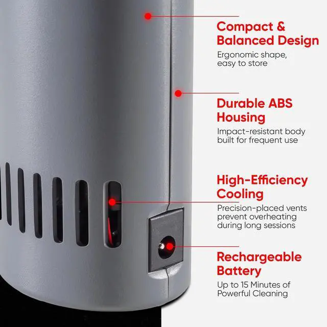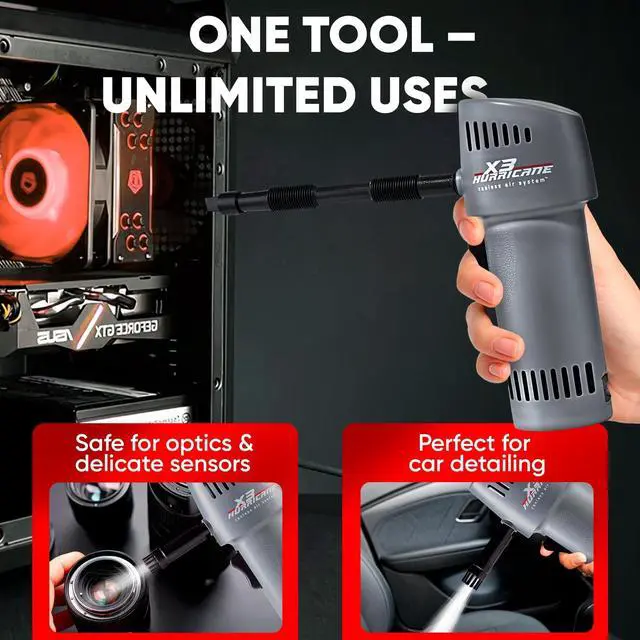 Perfect for desk setups, car interiors, barbershops, and travel toolkits. BUILT TO LAST 5 YEAR WARRANTY Engineered in the USA with a brushless motor, rugged design, and super power turbo fan performance. Out performs compressed air dusters and refillable air cans.
