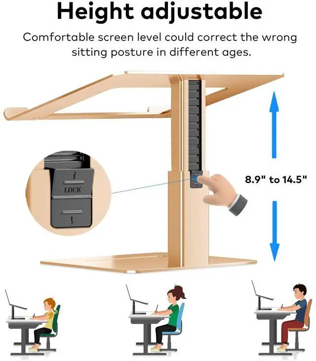 Wide Compatibility: This laptop stand is compatible with all laptops from 10''-17'', such as Apple Macbook, Macbook, Macbook Air/Pro, Ipad, Ipad Air/Pro, Lenovo ThinkPad, Dell, HP, Samsung, Chromebook, and other notebooks.