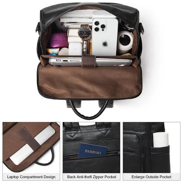 The travel backpack for women designed with multi functional pocket for 3-5 days travel necessities. laptop backpack women has main pocket, front zipper pocket, interior pocket, side pockets, laptop compartment, anti-theft pocket making your items organized ^^ High Quality MaterialBackpack purse for women made of soft and durable faux leather and fabric lining, this leather backpack has a smooth and durable zipper closure, and each seam is reinforced for durability. The leather laptop backpacks features excellent water-resistant and moisture-proof properties, ensuring it remains in good condition even in humid environments ^^ Perfect PresentIdeal leather backpack purse for women to carry.