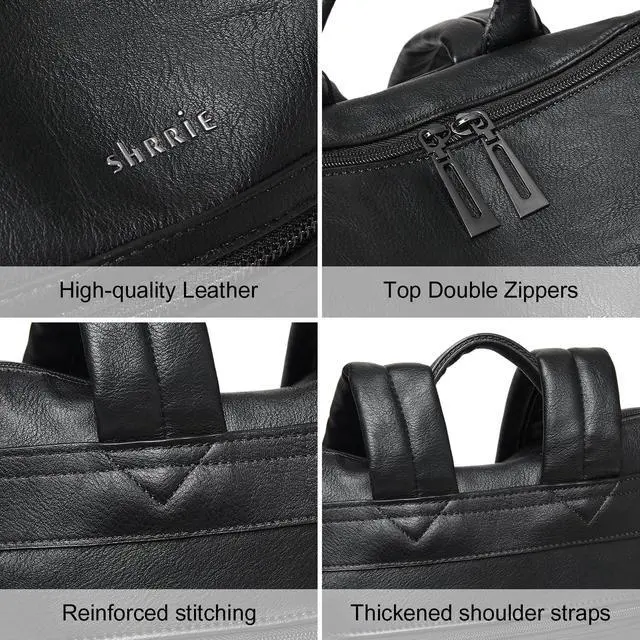 Shrrie 15.6 inch Laptop Backpack for Women,Large Leather Backpack Purse,Travel,Carry on,Water Resistant Casual Laptop Backpacks,College Backpack,Work Backpack for Women,Two-tone Black