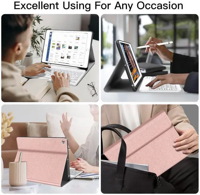 Keyboard Case for iPad 10.2S mart case with keyboard for iPad 9th Generation 10.2" 2021; iPad 8th Generation 10.2" 2020; iPad 7th Generation 10.2" 2019. A2602/A2603/A2604/A2605; A2270/A2428/A2429/A2430; A2197/A2198/A2199/A2200. NOT compatible with any other models ^^ Rechargeable Wireless KeyboardThe keyboard Bluetooth connection is stable and mechanical scissor keys are quiet. US Chipset make typing stable and fast. Rechargeable battery make keyboard can work wireless for longer time, provide the freedom to read, browse & work anywhere at any time ^^ Multi Angles & Convenient Pencil HolderGet the best viewing position by remove keyboard and adjust the screen.