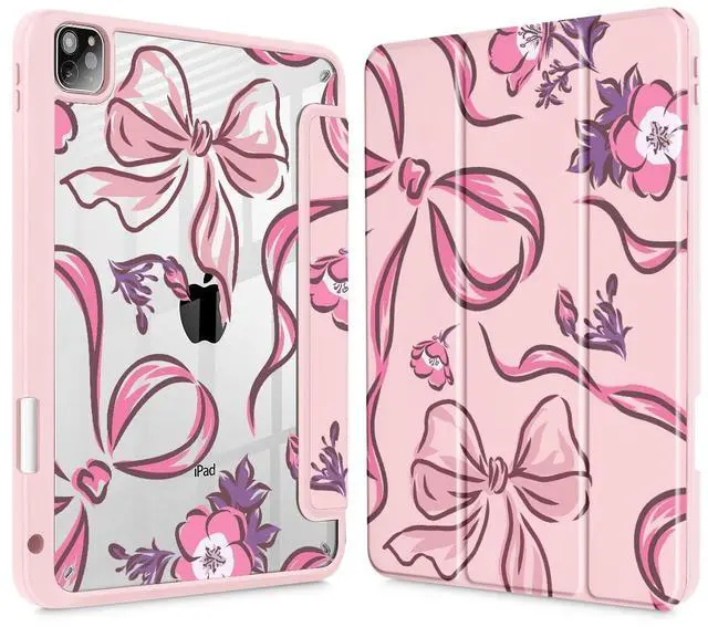 Mektron for iPad Pro 12.9 M2 2022 Case Compatible iPad Pro 12.9 inch 6th/ 5th/ 4th/ 3rd Gen Cover 2021 2020 2018 Tablet Case with Shockproof Clear Back Cover for 12.9-inch iPad Pro, Flowers-Bows-Pink