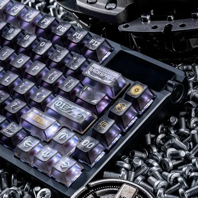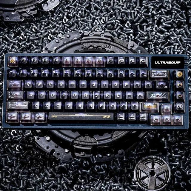 Step into the future of mechanical keyboards with these stunning cyberpunk-inspired frosted clear keycaps. The 120-key set features a sophisticated matte finish that resists fingerprints and maintains a clean, pristine appearance during intense typing sessions. Each keycap is crafted from durable PC material with metal pad printing, creating a mesmerizing shine-through effect that illuminates your setup. The transparent design showcases intricate ruins-themed artwork, perfectly complementing both minimalist and gaming setups. Compatible with 60%, 75%, 80% and full-size mechanical keyboards, these keycaps transform your typing experience with their premium feel and distinctive aesthetic.