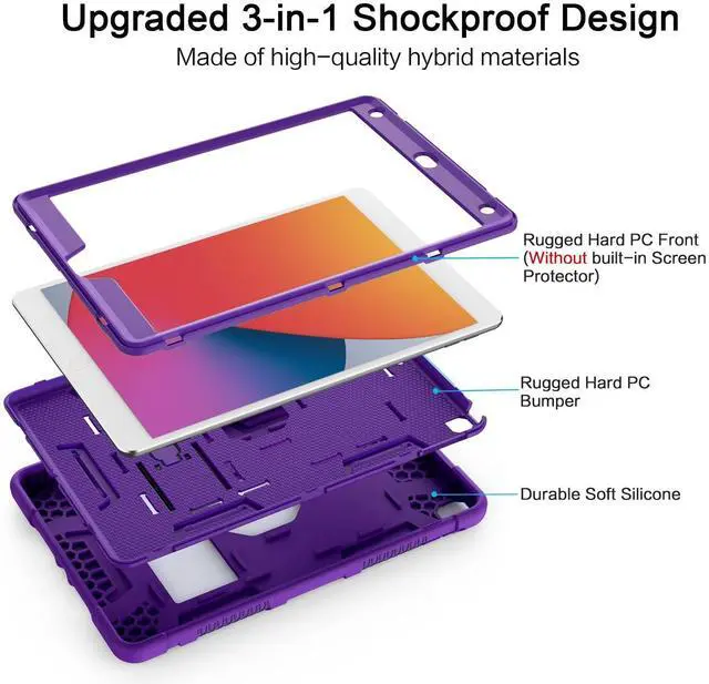 • Exclusively designed for iPad 9th/ 8th/7th Generation 10.2 inch 2021/2020/2019 release. Compatible Model: A2602/A2603/A2604/A2605/A2270/ A2428/ A2429/ A2430/ A2197/ A2198/A2200. [No Screen Protector]DO NOT fit other iPad.