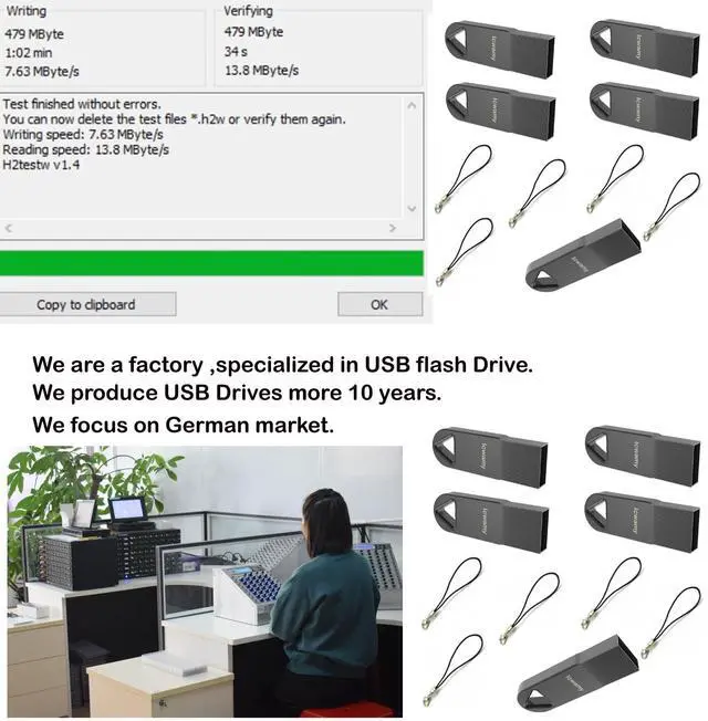 Write speed: 7MB/s, with a better SLC flash chip, passed H2 software test. ^^ Bulk USB flash drive 512MB, plug then starts to transfer. Operating temperature range of 512MB thumb drive 10 Pack and cute 512MB flash drive 10 Pack ^^ USB 2.0 flash drives Bulk 512MB USB drives bulk 10 Pack and metal USB drive bulk are between -8 and 42, with 10 pieces lanyards. There is one box, 10 Pack black mini usb drives 512MB are in one box. ^^ 512MB 10 Pack pen drive USB stick 512MB 10 Pack and 512MB mini USB drives 10 Pack. The size is 1.57 * 0.51 * 0.18 Inches, it is easy to carry. You can use 512MB USB memory stick to copy the data files and to download the music. ^^ We are specialized in USB Flash Drive more 10 years. And we focus on German market on B2B. We can do customized logo for you.