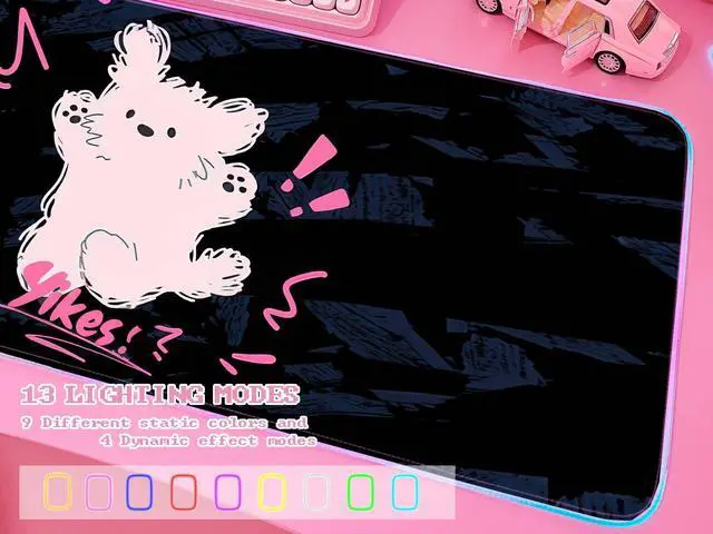 • 13 Lighting Modes Gaming Mouse Pad Super Glow Fiber provides a great RGB back lit effect. You can choose from 13 lighting modes: 9 static light modes and 4 dynamic mode.