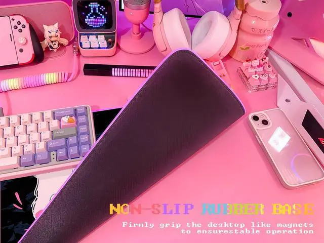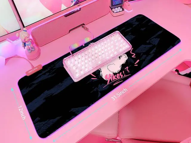 JMIYAV Pink RGB Gaming Mouse Pad 31.5x12 Inch PC XL Large Extended Glowing Led Light Up Desk Pad Non-Slip Rubber Base Computer Cute Mousepad Mat Desk Accessories Gaming Setup 45-495