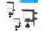 Desk Clamp: The clamp is adjustable for fitting different table through adjust the knob and screw. The clamp can support the table thickness from from 0.4 inches to 4.7 inches. with EVA silicone Non-Slip Mat; ^^