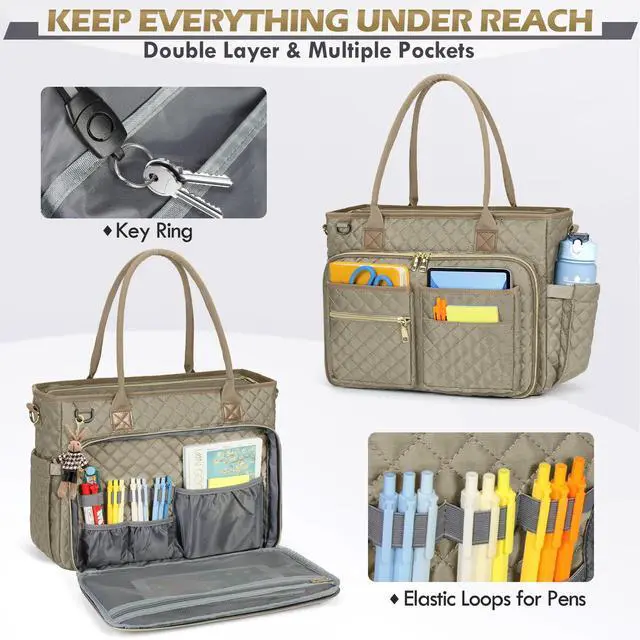 The laptop bag for women also provides multiple ways of carrying, it can serve as a shoulder bag, office bag, laptop carrying bag, or laptop cross-body bag ^^ IDEAL GIFT CHOICE- Laptop tote with combined elegant appearance and practical design. Large capacity and multiple storages make it a great choice to use as a teacher bag, nursing bag, professional work bag, business travel bag, or weekend getaway carry-on bag. Perfect for commuting teachers, tutors, nurses, business ladies, etc. Ideal gift for teachers, nurses, and parents, on any holidays, birthdays, or anniversaries. And also ideal Teacher Appreciation Gifts