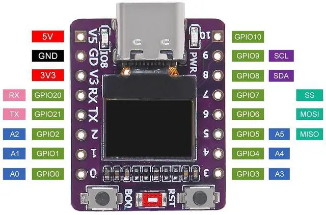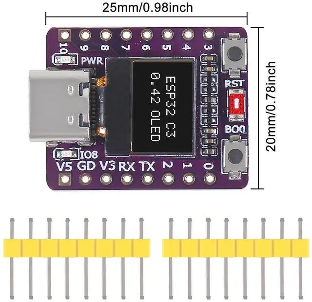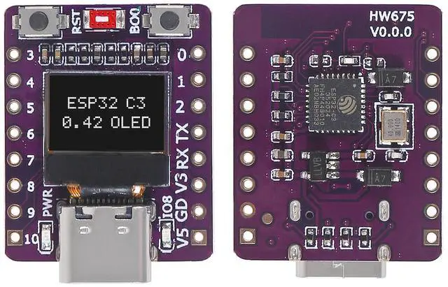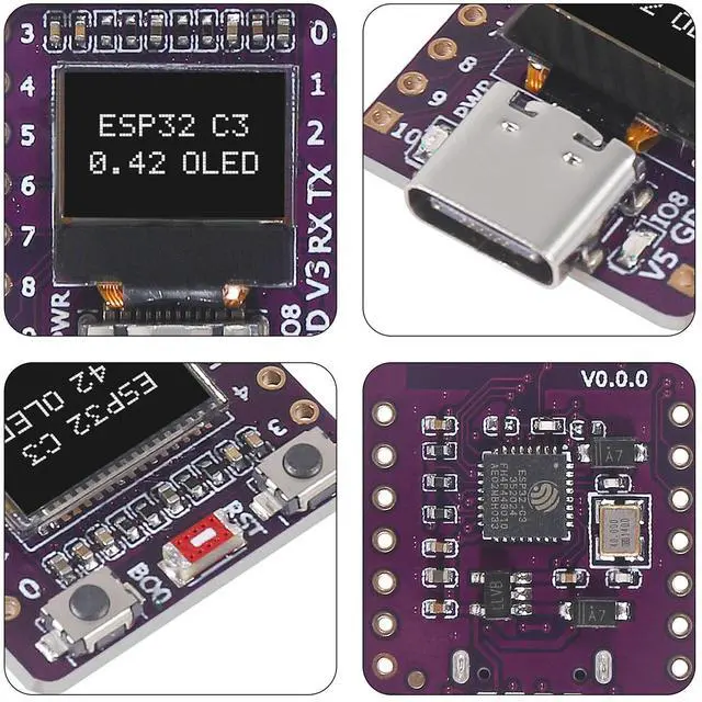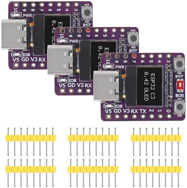 3PCS ESP32-C3 OLED Development Board With 0.42 Inch OLED Module Ceramic Antenna Wifi Bluetooth ESP32 Supermini Development Board ^^ ESP32C3 0LED development board based on ESP32C3FN4/FH4 design and production of core board, built-in 4M flash, with WiFi and Bluetooth two modes, onboard ceramic antenna, equipped with 0.42 inch 0LED screen, support for usb download, invested heavily in the launch of gold ESP32C3 0LED development board ^^ High cost-effectiveness, compared to the performance and functionality it provides, ESP32-C3 has significant cost-effectiveness and is suitable for large-scale deployment of IoT projects. ^^ Rich peripheral interfaces with abundant peripherals and functions, suitable for small projects and scenarios such as IoT, wearable devices, and smart homes ^^